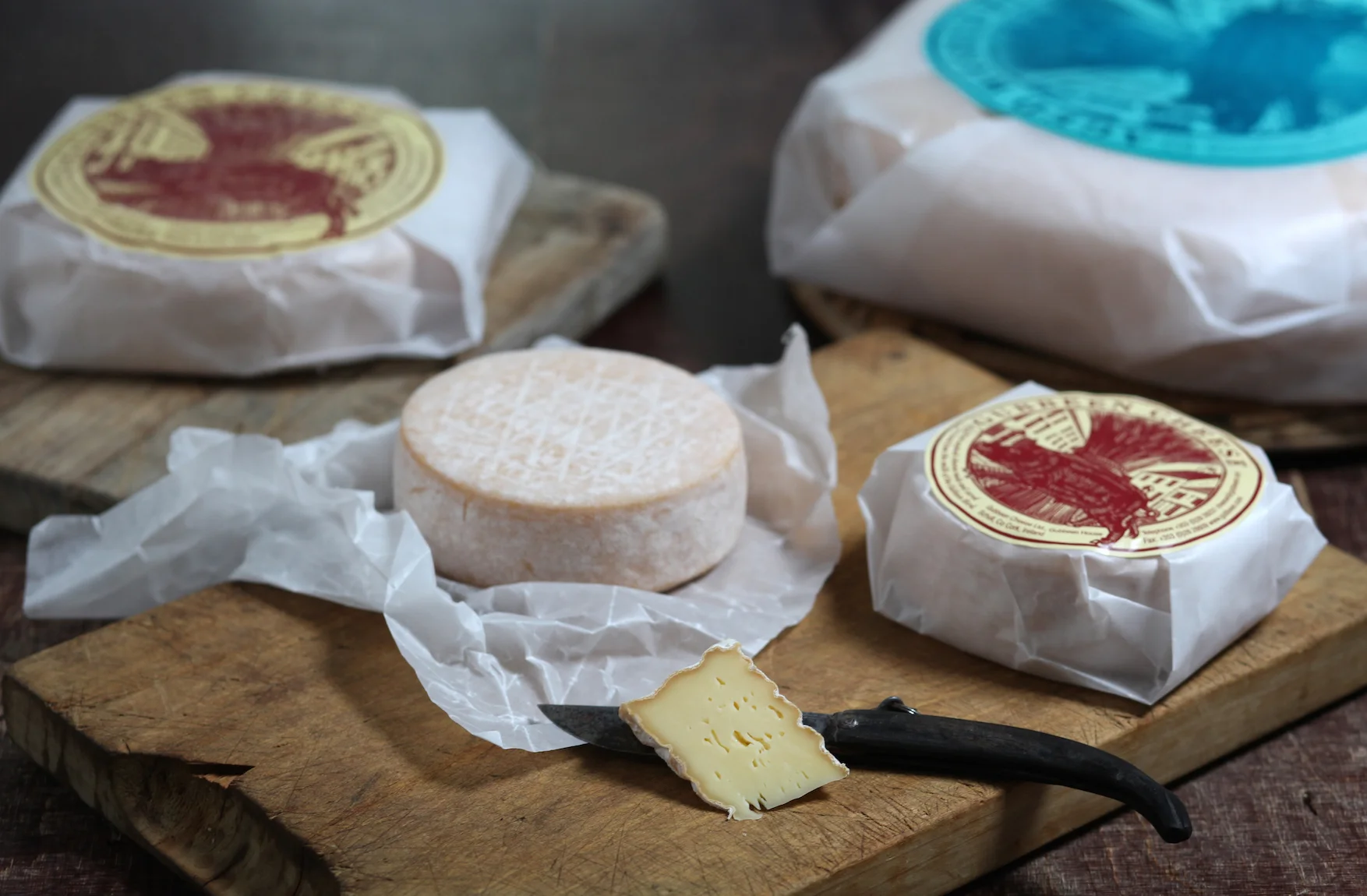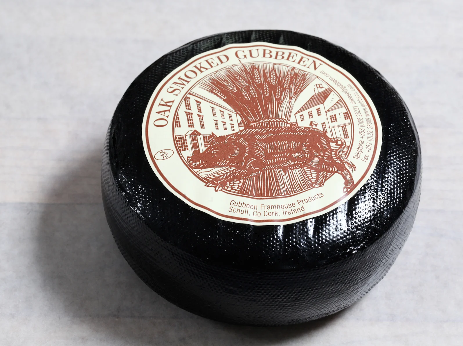 Available in rind washed or smoked (Has a black wax surface )